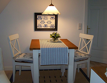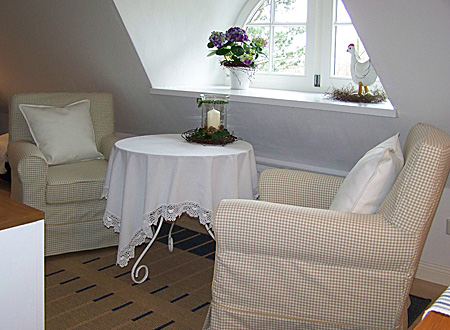 Unter dem Reetdach, mit separatem Eingang, befindet sich die mit 4 Sternen, durch den deut. Tourismusverband (DTV), ausgezeichnete Gästewohnung.